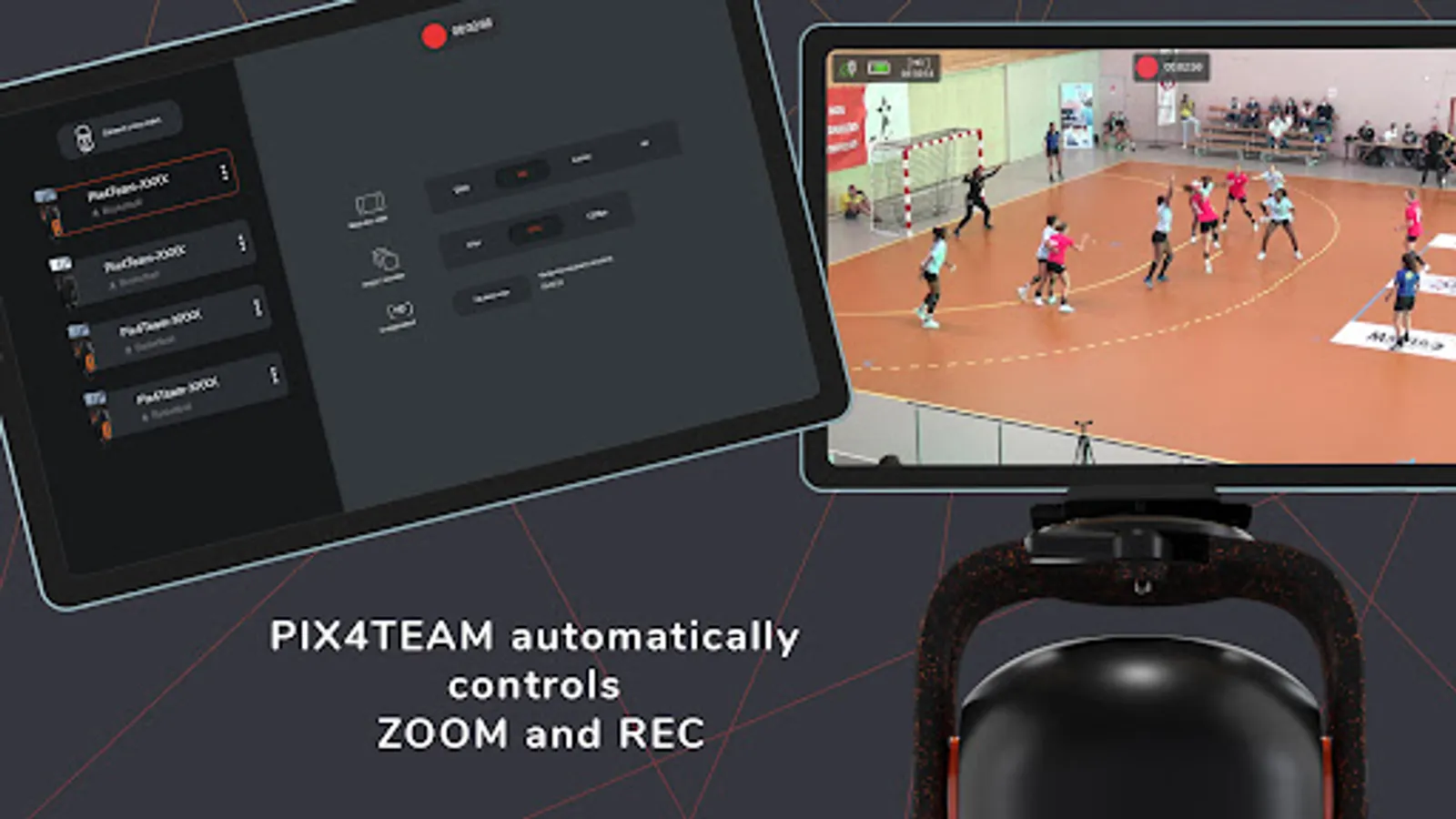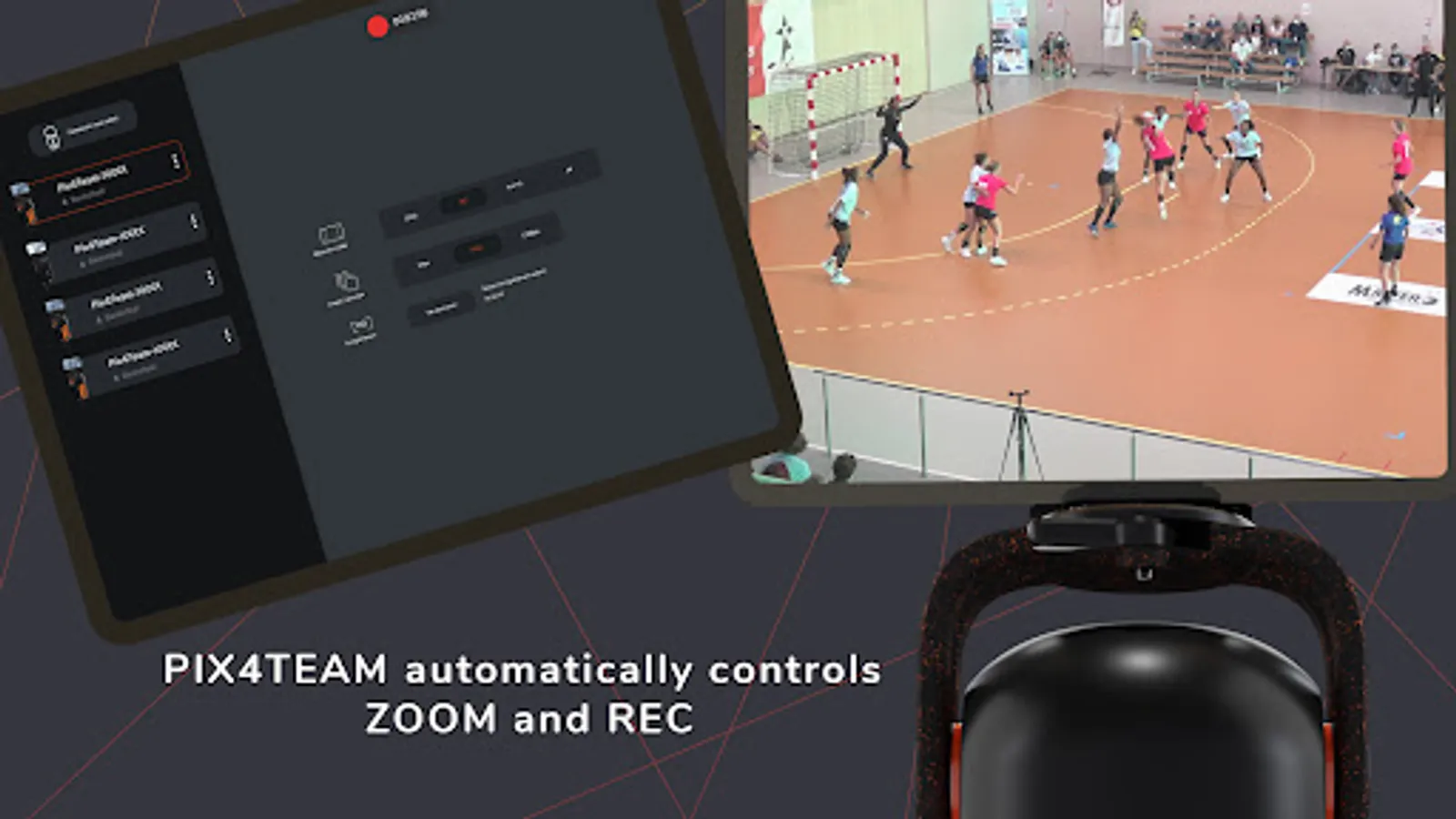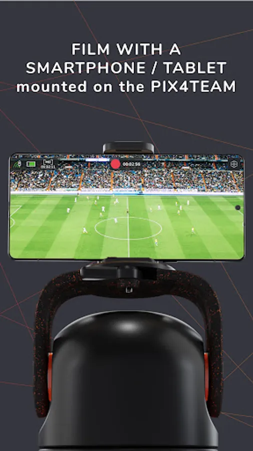 The PIX4TEAM Camera application allows you to automatically film your sport game with your smartphone / tablet mounted on the PIX4TEAM robot-cameraman.