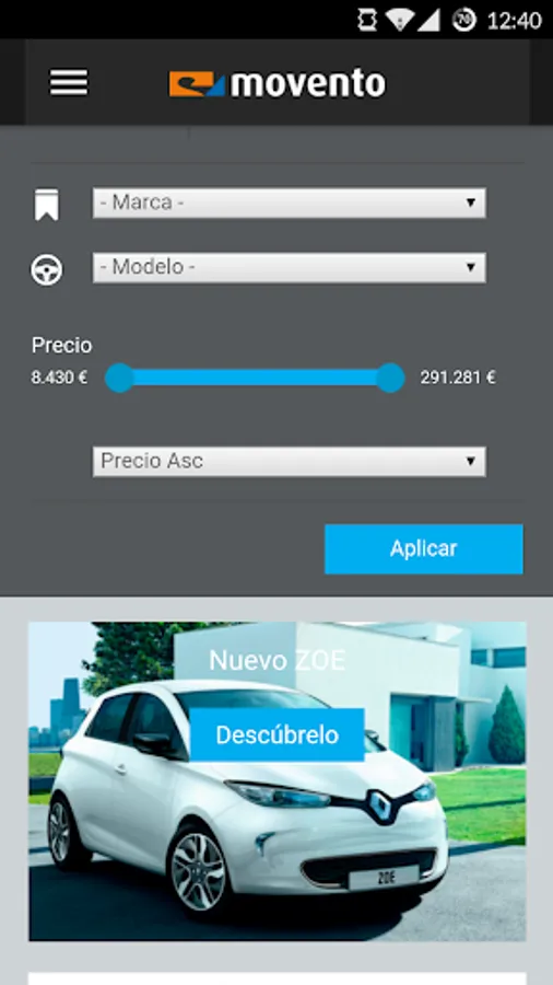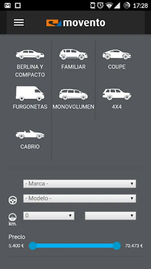 - Access to the catalog of the vehicles sold by Movento and its dealers