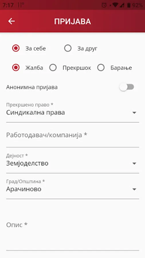 SSM - Workers 'Rights is a mobile application that allows citizens to use their mobile phones to report violations of workers' rights to the Federation of Trade Unions of Macedonia.