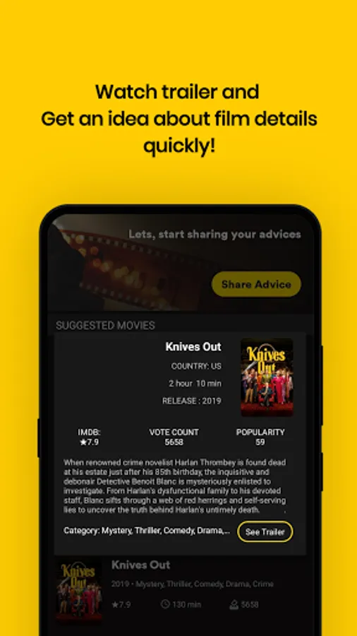 Movisor gathers the most watched and liked movie and TV series suggestions for you, creating an always updated huge catalog of ideas and helping you make decisions quickly.