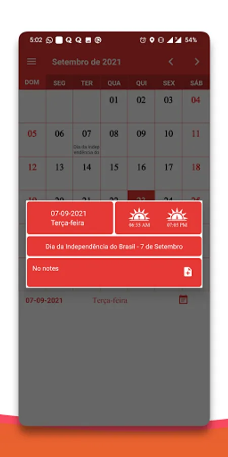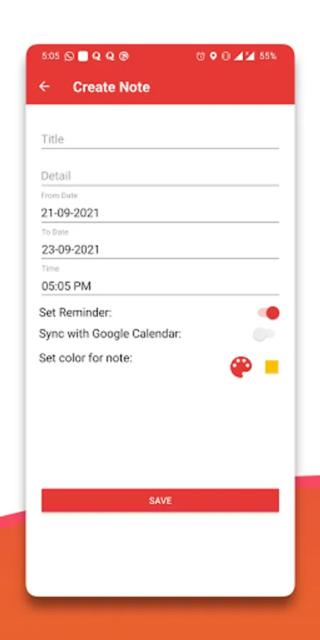 Tap one of the calendar dates. if you want to create an event on date 15. Tap on date 15 to show the dialog to create an event or note. Choose the icon and color, fill in the note and tap the Save button.