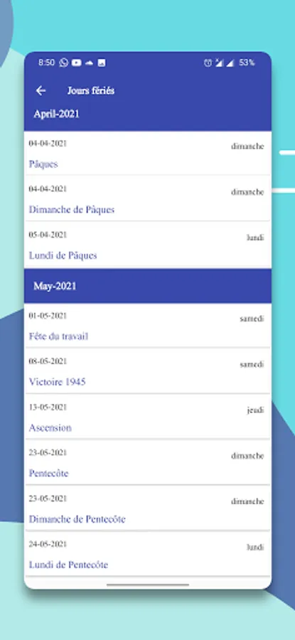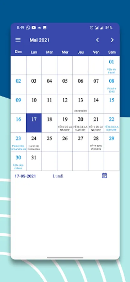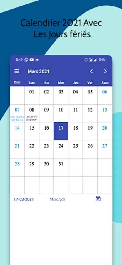 Download now and take advantage of our new French 2021 calendar application, new holiday calendar application (2021 calendar with holidays) to enjoy and know each 2021 public holiday on your Android phone.
