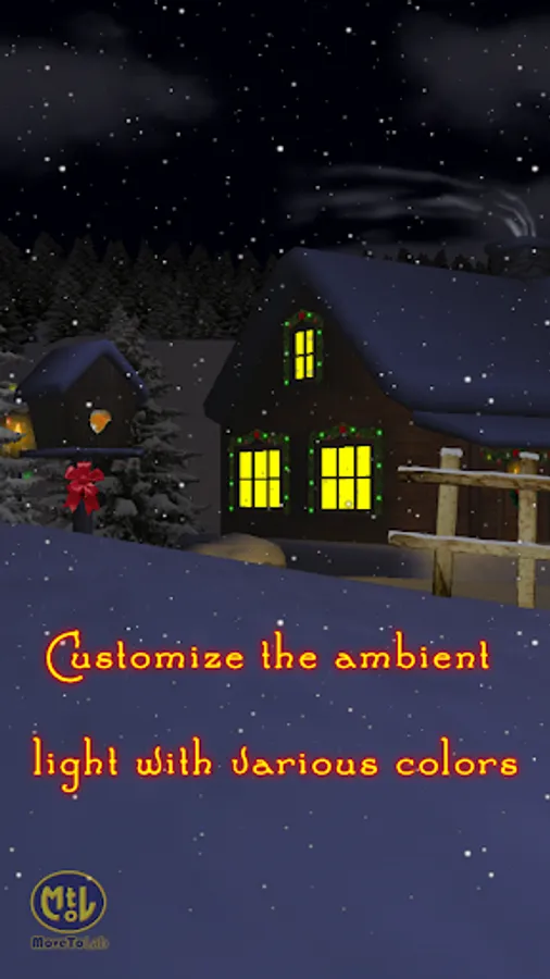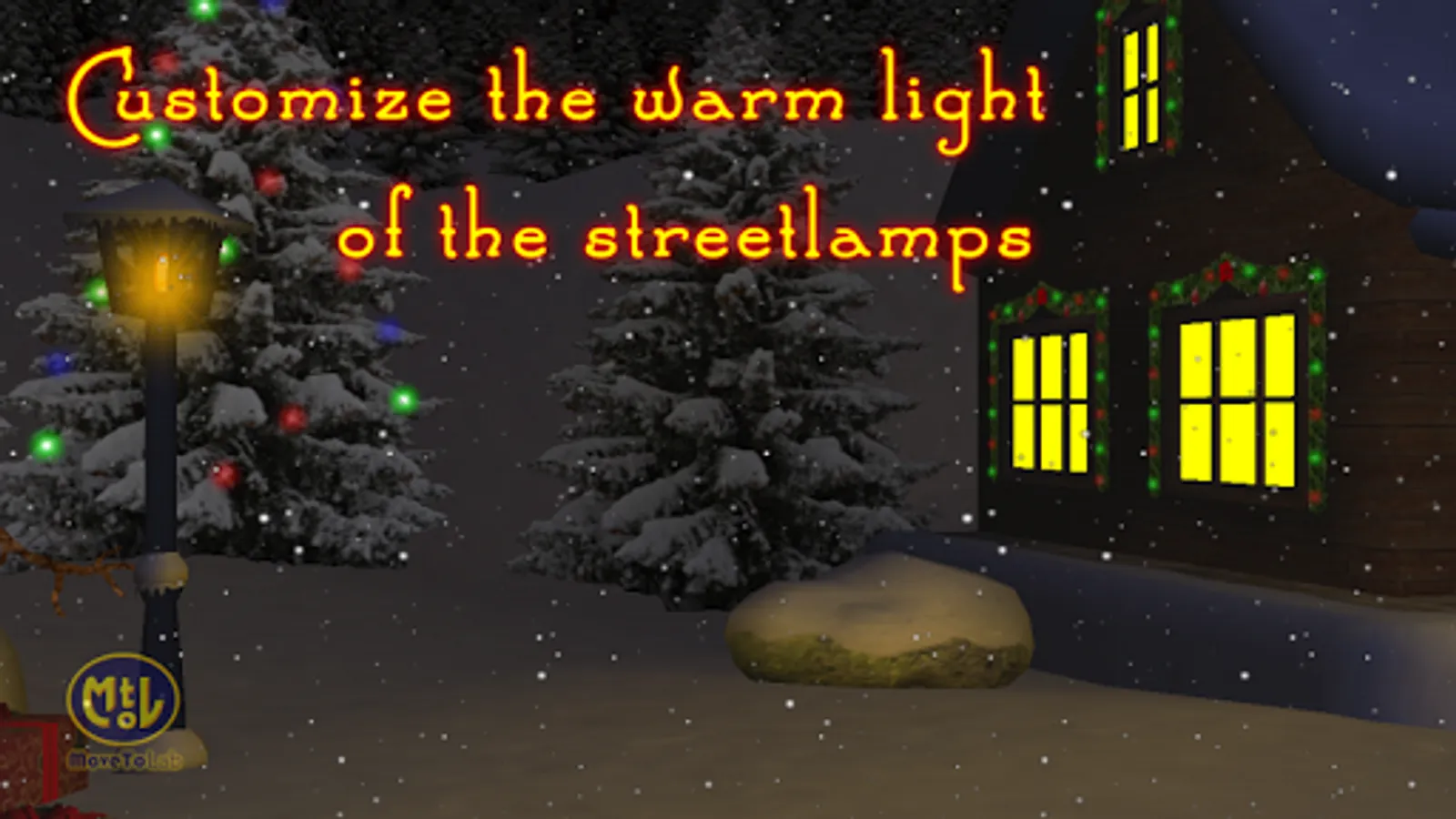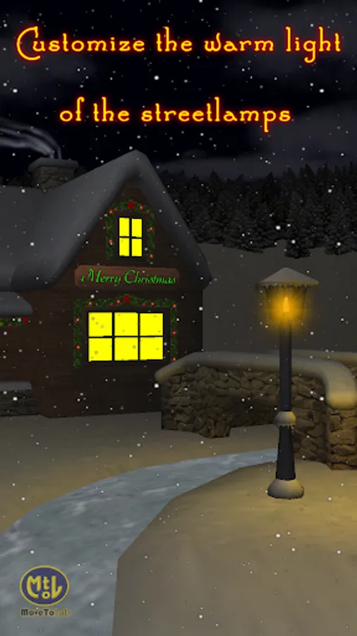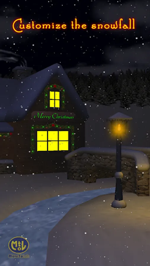 Enjoy the falling snow and customize your Live Wallpaper the way you want! Change the speed of the snowfall, modify the swinging properties of the lantern. Most of the parts of the scene can be shown or hidden such as the redbreast, the wreath on the door, the moon, the streetlamps, and many more!
