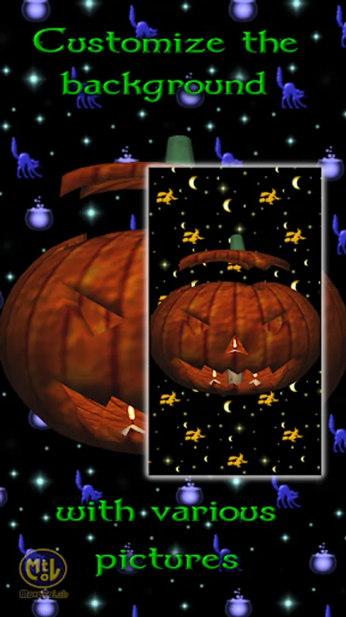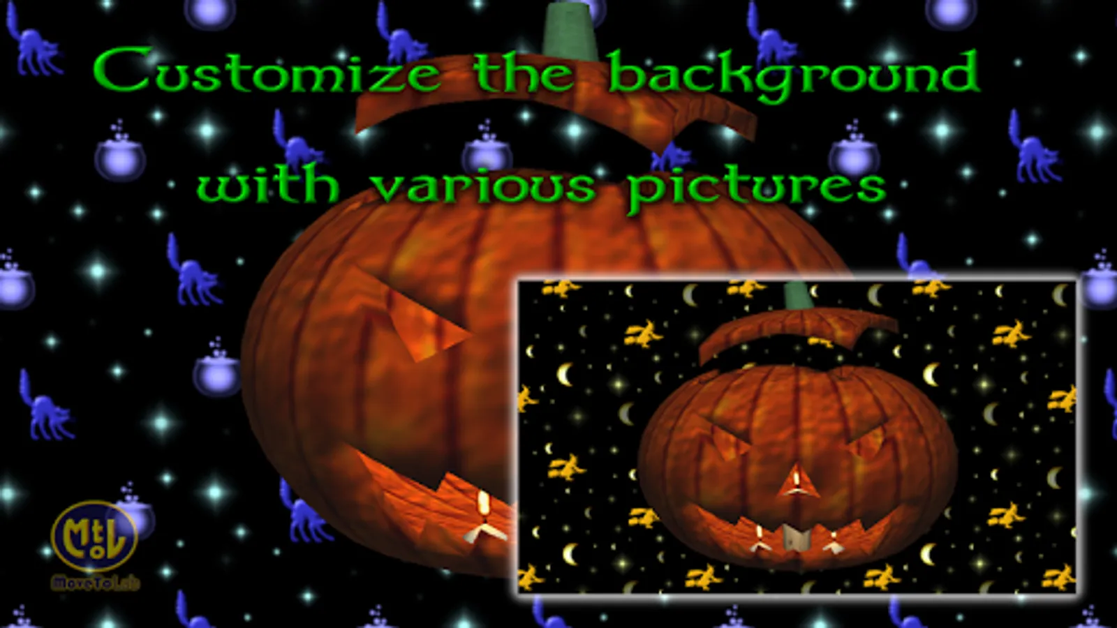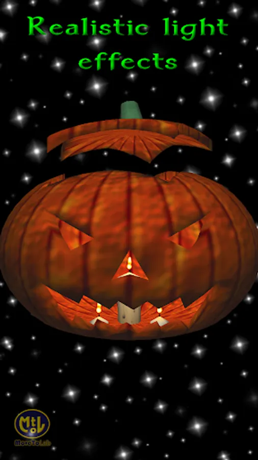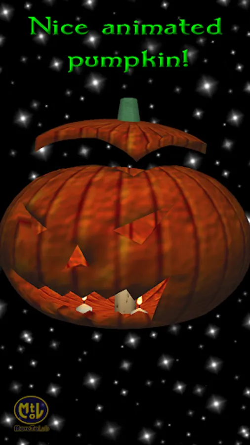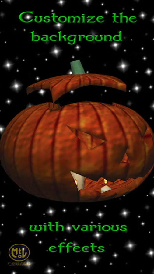 Turn around the big animated shiny pumpkin, illuminated by realistic glowing candle lights. Enjoy the magical and twinkling starry sky. The animated pumpkin hat will make your device come alive!