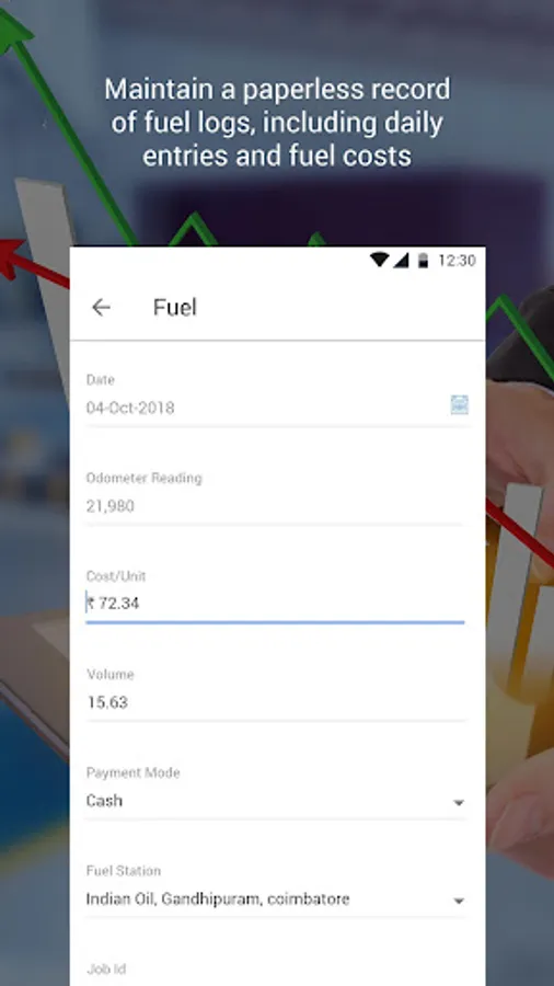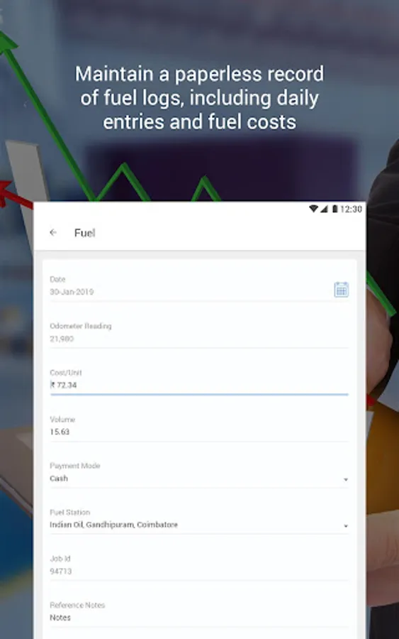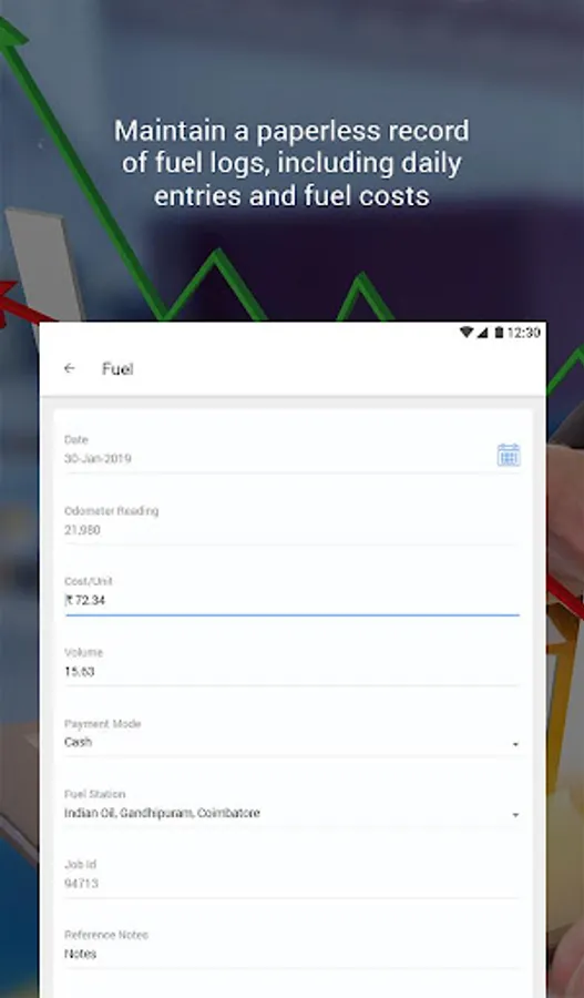 6. Record fuel entries made for the vehicles, including the fuel costs and payment mode.