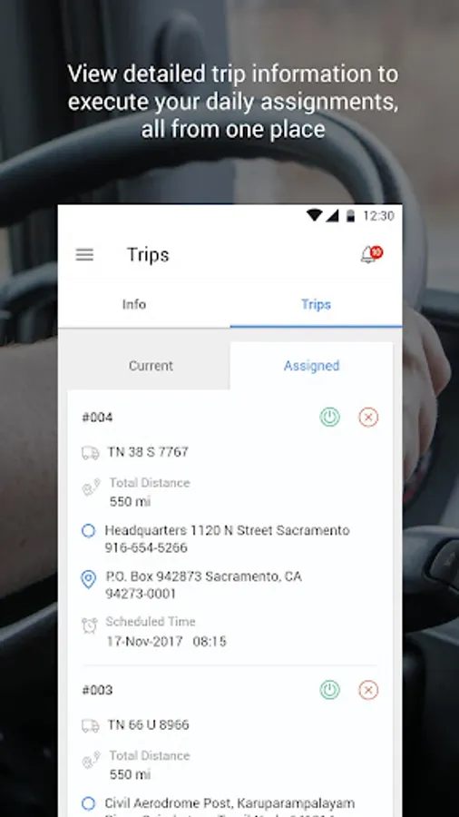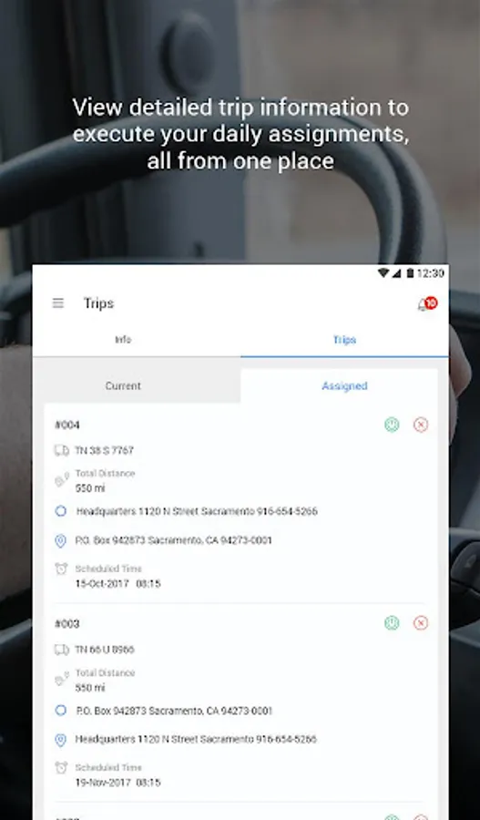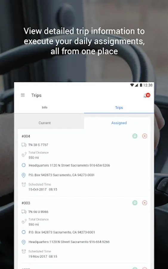 From accepting daily assignments, reviewing trip information to recording fuel and on-road expenses, the drivers can execute their operations within just a few clicks.