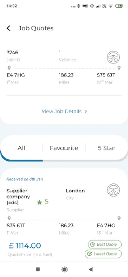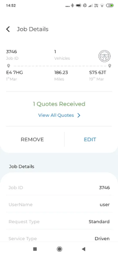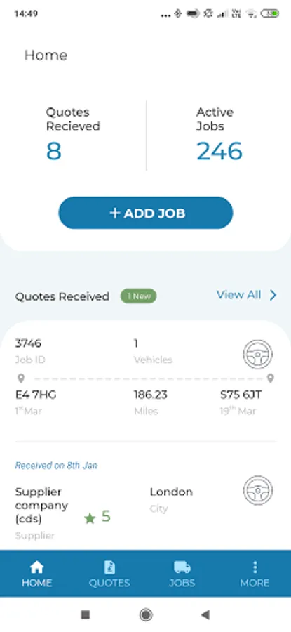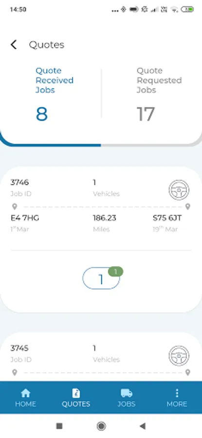 The Movex app allows car dealers to request a quote for a vehicle to be collected and delivered, their request then goes to our database of over 600 transport companies to quote, the dealer then accepts the quote they are happy with.
