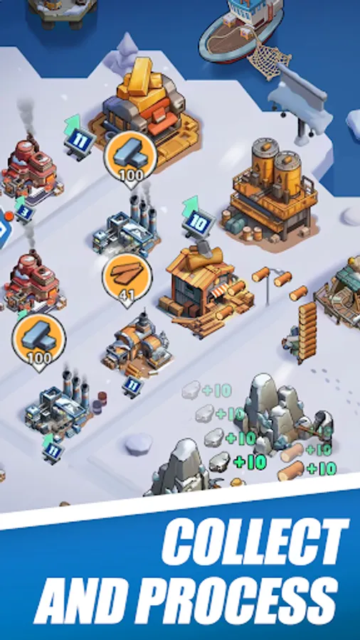 As your population grows, the island’s limited space becomes insufficient. Expand your territory through land reclamation, creating space for new structures and factories.