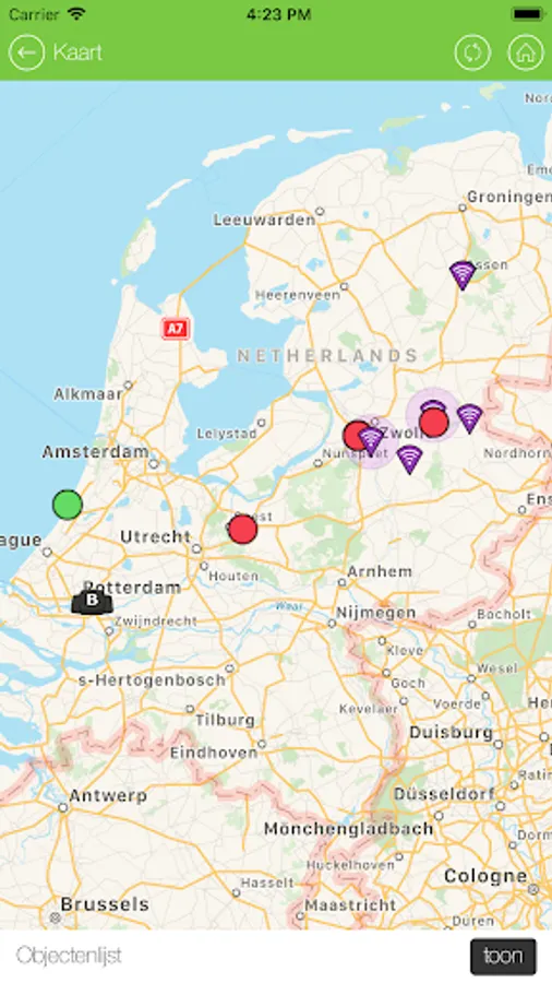 Finder records, among other things, rides of drivers and co-drivers, running hours and fuel levels and temperatures. The (locations of) vehicles, loads and people can also be seen and tracked in real time via a revolutionary cloud solution. The platform uses techniques such as GPS, RF and LoRa. In many cases, location determination can be requested live and per second. Among other things, fleet managers, (car) rental companies, leasing companies and transport companies have direct insight and control, and can continuously streamline their logistics processes.
