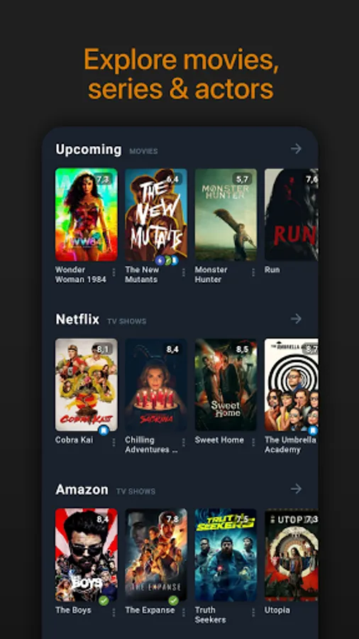 Moviebase is the most powerful exploring and tracking app for movies, series, seasons, episodes and actors from the largest community database TMDB. Get access and use media content from The Movie Database (TMDb), IMDb and Trakt.