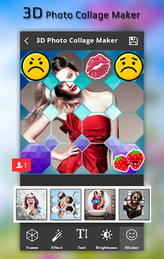 In 3D love photo Collage Maker, you can add new HD photo frames layout to your favorite photos and grid photos, and add text, template, strips to express your emotion to your friends or family