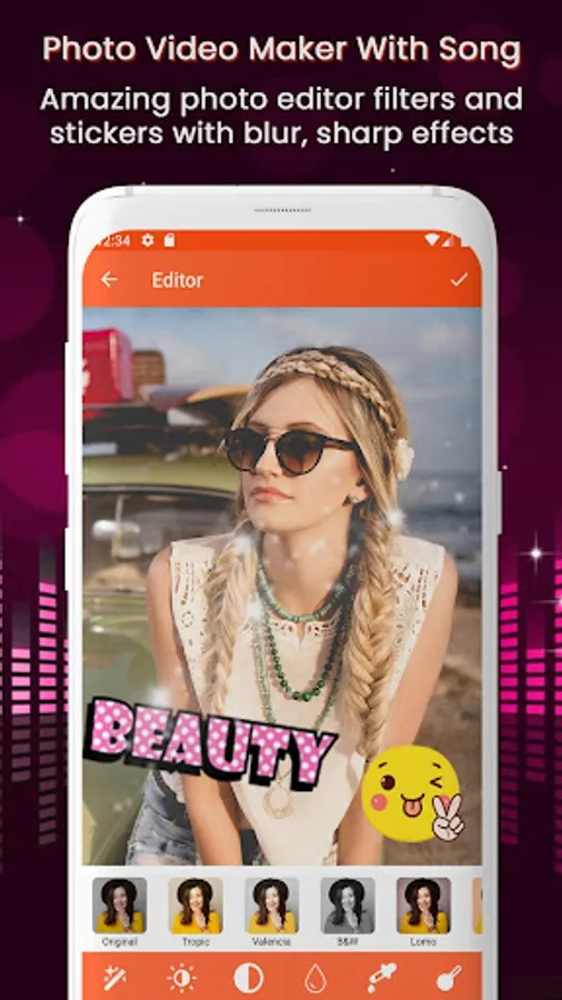 Photo Video Maker With Song is app to make video with Pictures and Music and share amazing music video story, Funny video with your friends!