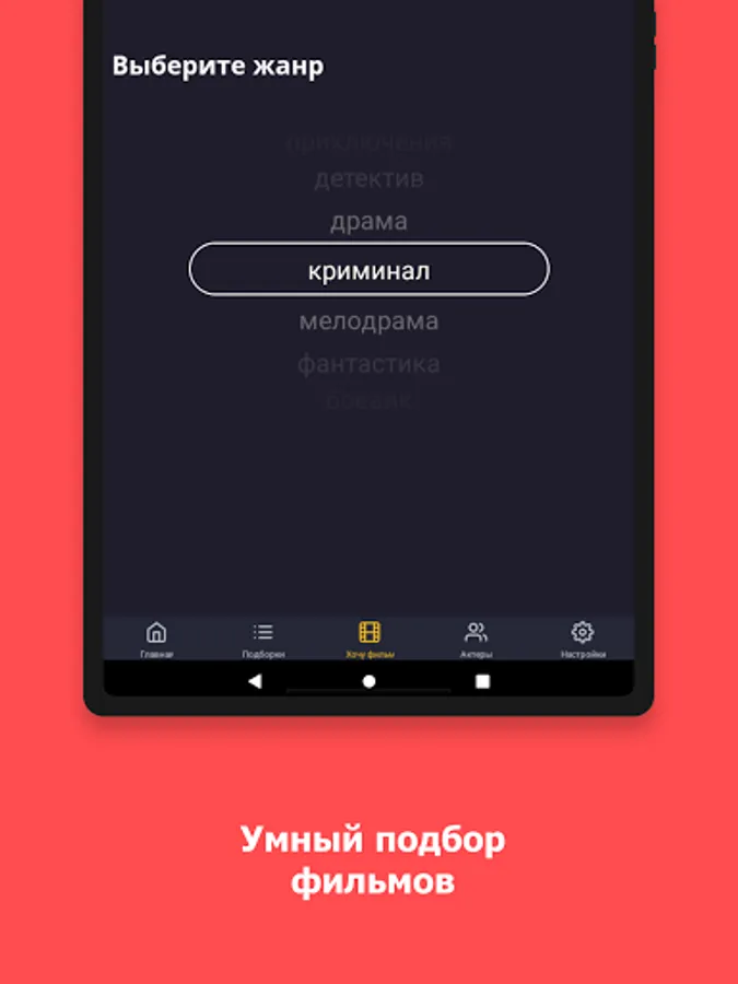 And if you don't know at all what you want to watch, a selection of random films in different genres will come to the rescue.