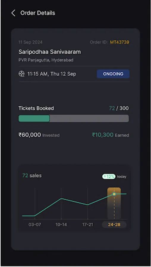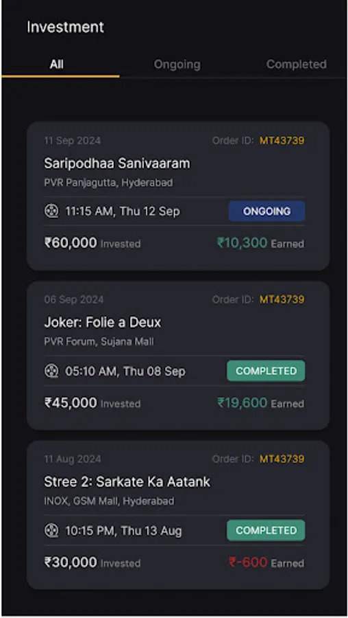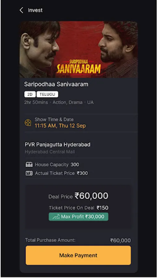 This App provides a feature for user to buy full show of any movie and makes profit or less