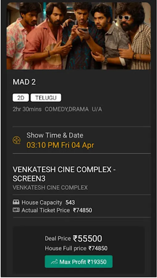 Book your full show with MyBoxOffice app.