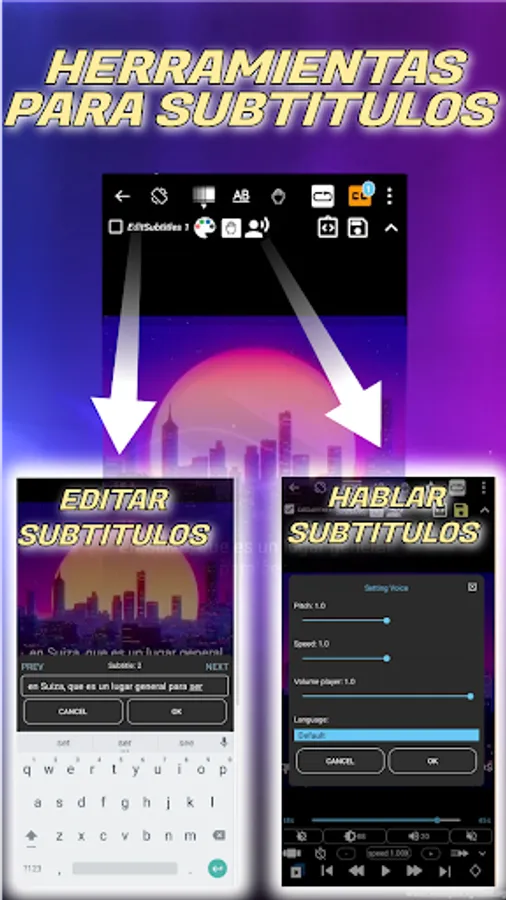 ►Ver subtítulos , desde el almacenamiento , con la posibilidad de guardarlos internamente y nunca mas cargarlos , y además de poder editarlos y cambiar su formato como el color y el tamaño.