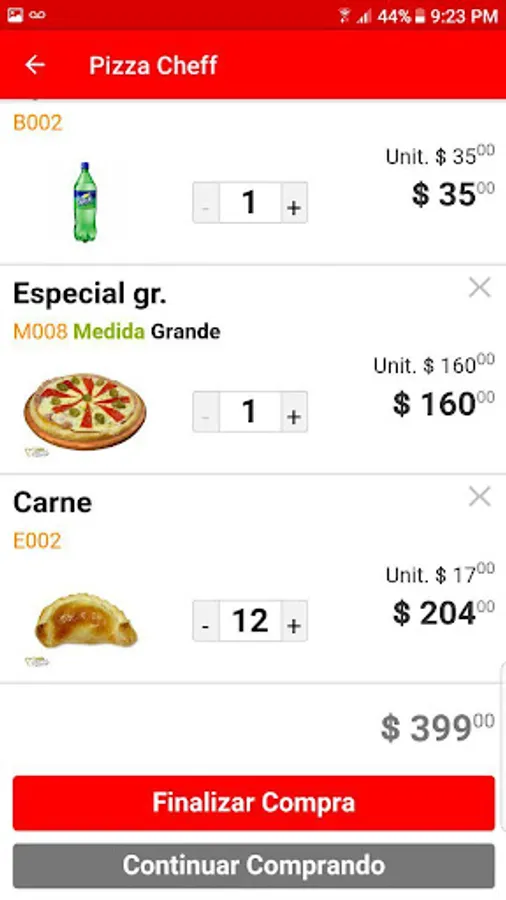 Buy Pizzas, empanadas, desserts and drinks from your phone and send it where you indicate.