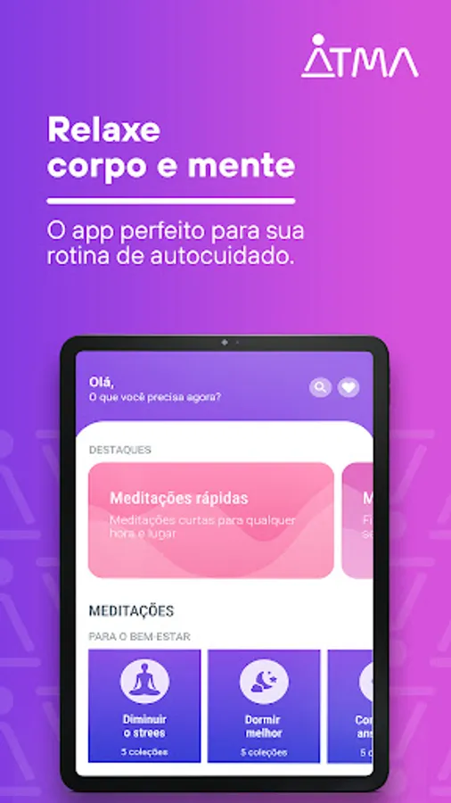 Discover Atma, the Meditation and Wellness app with more than a thousand exclusive contents: music to relax, background music and guided meditation 100% in Portuguese for your care routine. Create a healthy habit and have quality time just for you, explore: