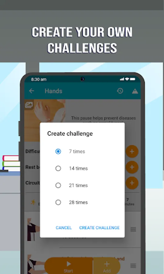 * Challenges: You can challenge yourself with challenges of 7, 14, 21 or 28 days.