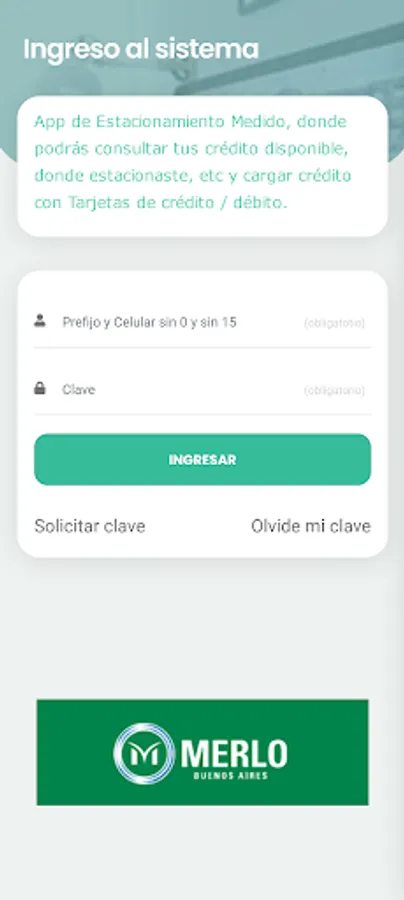 Application to load balance, control your parking lots, consult debt and other online management of the Smart Parking of the city of Merlo.