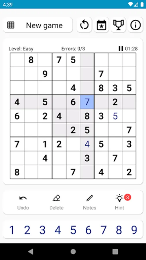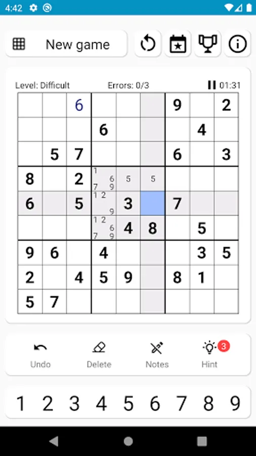 Sudoku has more than 10000 puzzles for you to play wherever and whenever you want.
