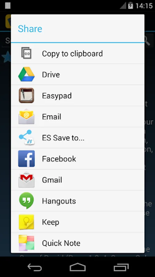 A: Just pressing for 2 or 3 seconds and a menu with the available sharing options will appear