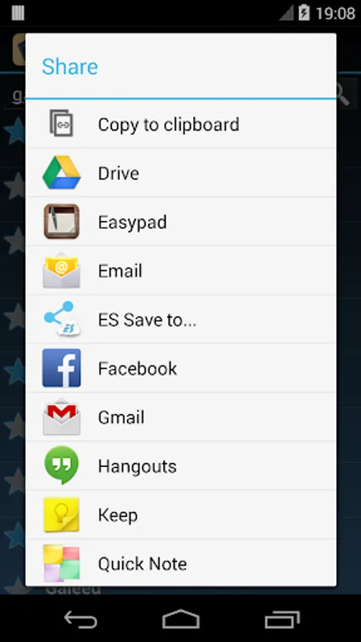 A: Just pressing for 2 or 3 seconds and a menu with the available sharing options will appear