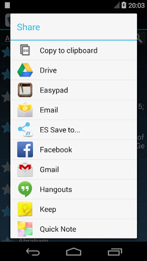 Q: How can I share a verse from the list?
