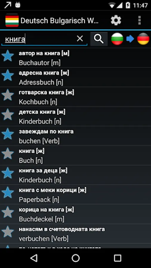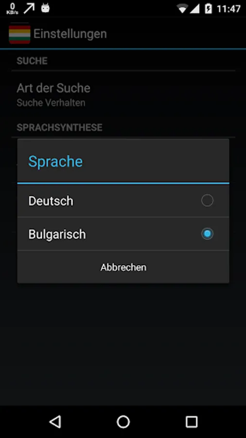 * Listen to the correct pronunciation in Bulgarian and German using Android's built-in Text-to-speech synthesizer.