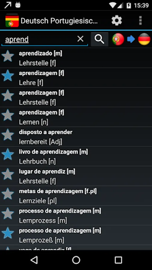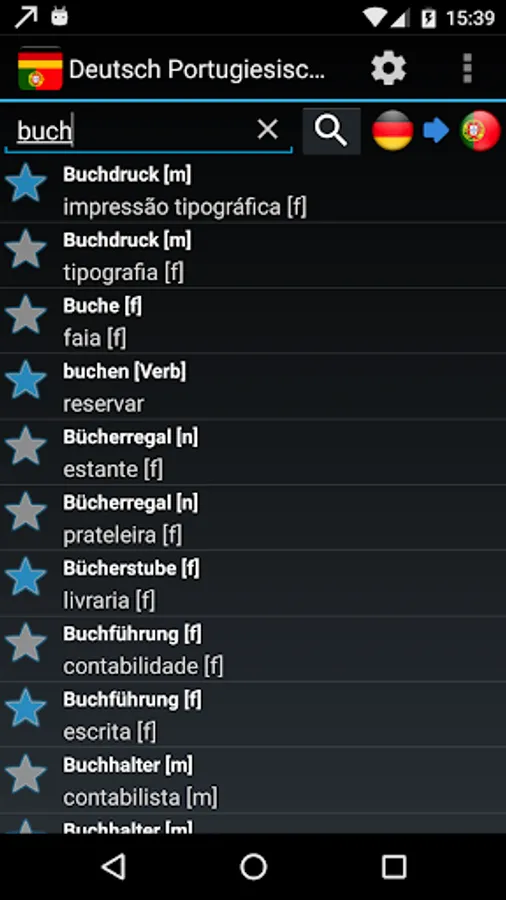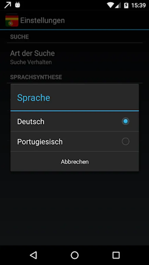 * Listen to the correct pronunciation in Portuguese and German using Android's built-in Text-to-speech synthesizer.