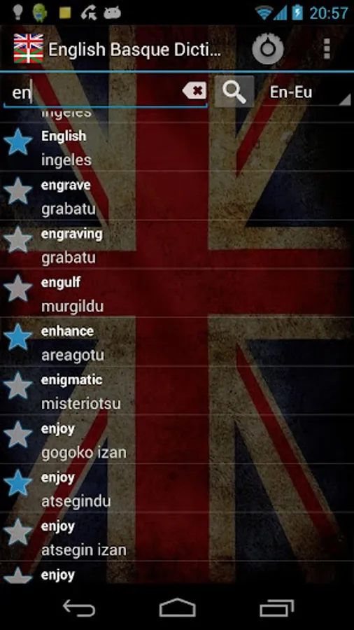 * Listen to the correct pronunciation in British or American English and Euskera using Android's built-in Text-to-speech synthesizer.