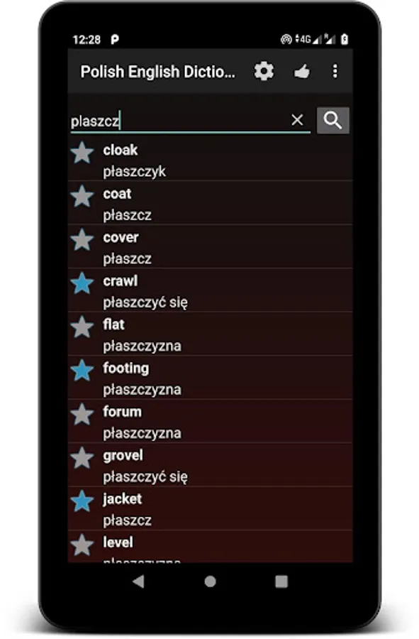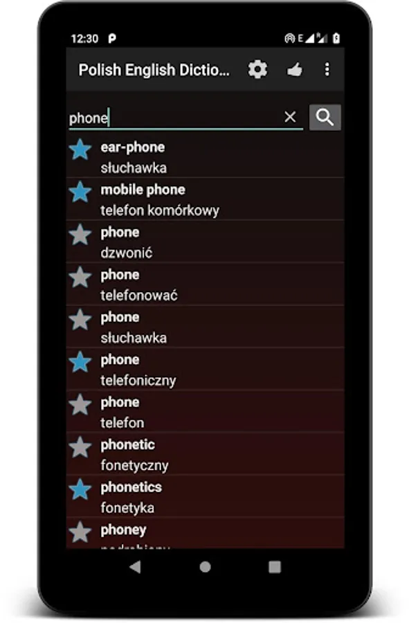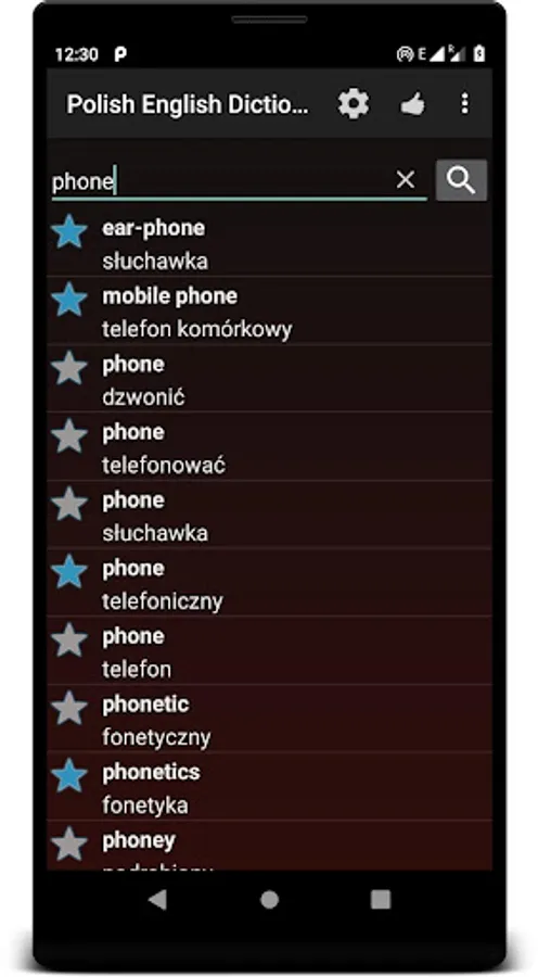 * Listen to the correct pronunciation in British or American English and Polish (if installed) using Android's built-in Text-to-speech synthesizer.