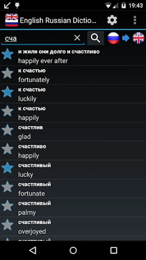 * Listen to the correct pronunciation in British or American English and Russian (if installed) using Android's built-in Text-to-speech synthesizer.