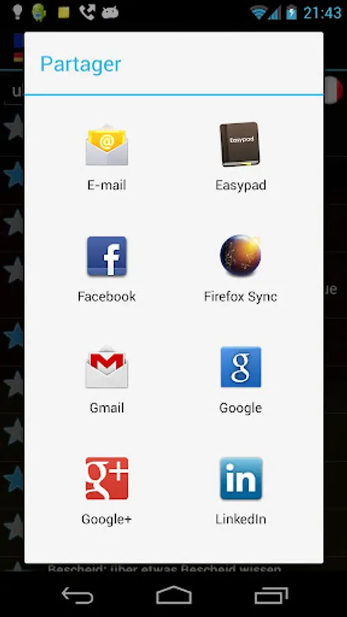 * Share translations by SMS, email, etc.