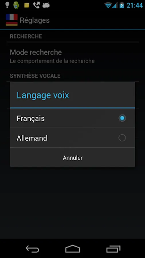 * Listen to the correct pronunciation in French and German using Android's built-in Text-to-speech synthesizer.