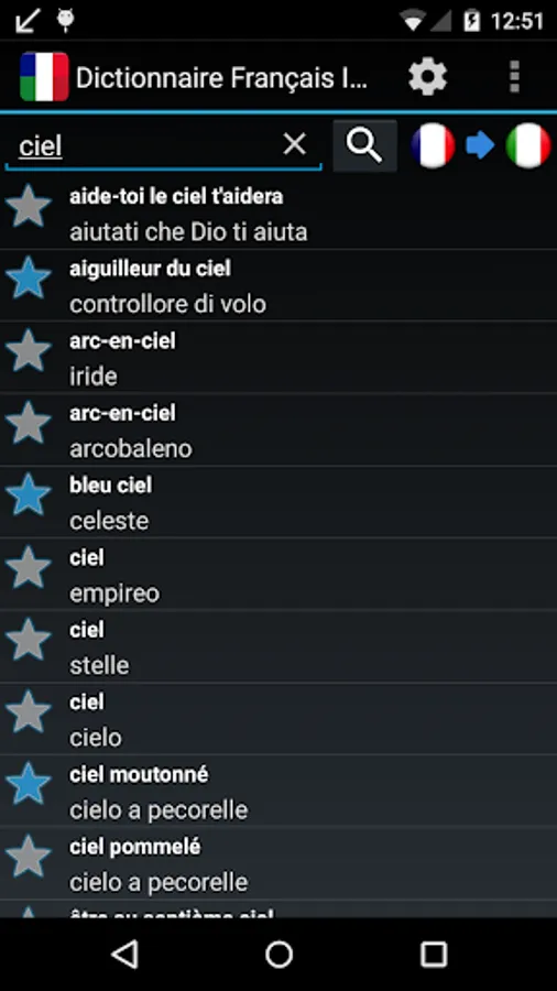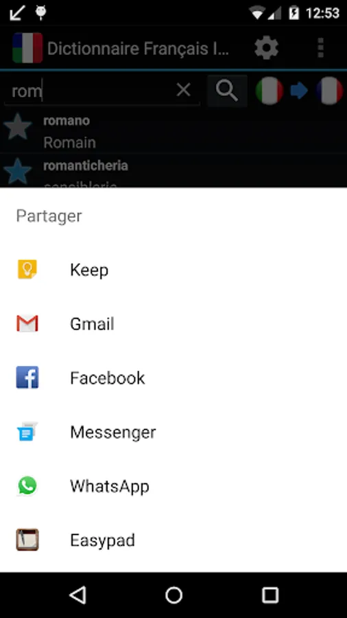 * Listen to the correct pronunciation in French and Italian using Android's built-in Text-to-speech synthesizer.