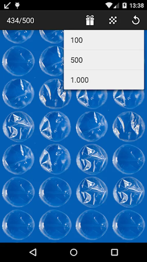 Blue plastic bubbles are fun! Play with different wrap sizes: 100, 500 and 1.000!