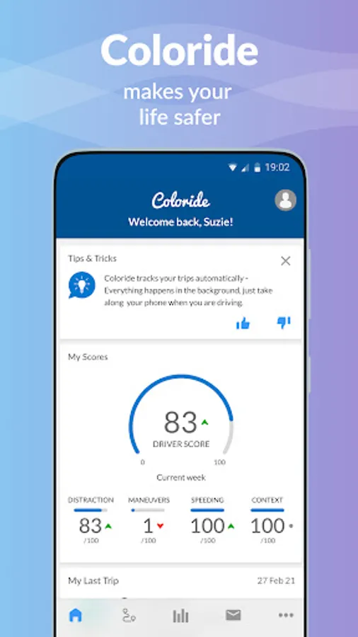 Coloride is a telematics app that automatically records your trips and analyzes your driving behavior. The app automatically detects your mode of transport while on the move and displays events like phone distraction, risky maneuvers and speeding after the journeys when you have been driving. It gives you feedback on your weekly driving behavior and contains a range of gamification elements.