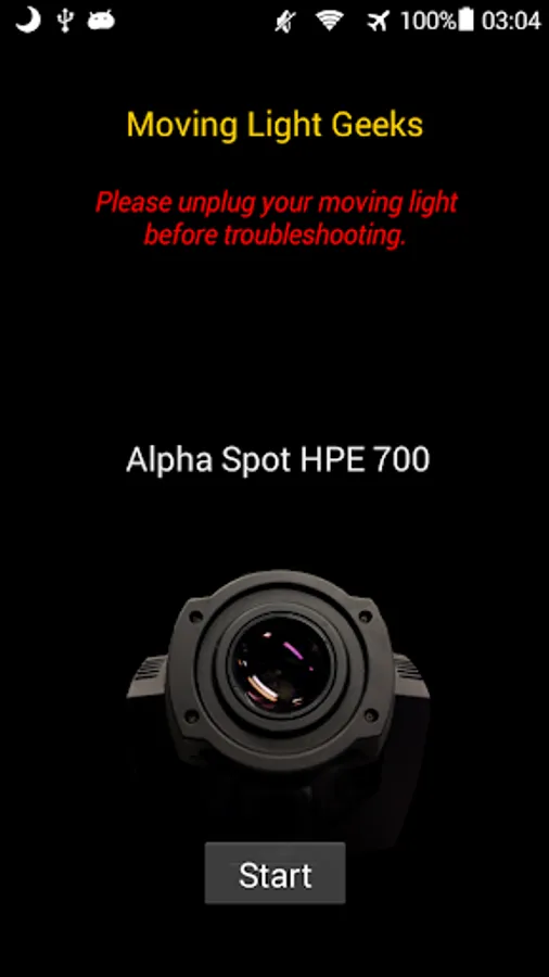 MovingLightGeeks S700 is a step-by-step guiding app for lighting techs and electricians, who work on moving lights like Alpha Spot HPE 700.