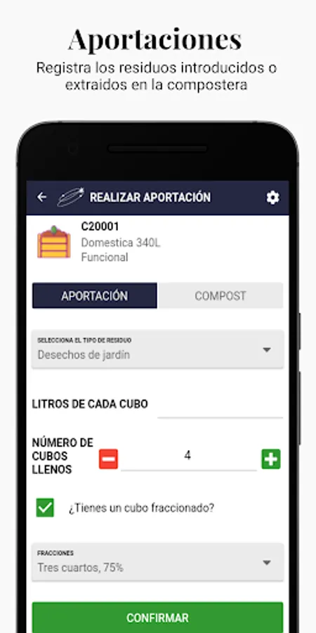 Management application to promote the compost (abano with food scraps) of households belonging to the Valencia Interior Consortium.
