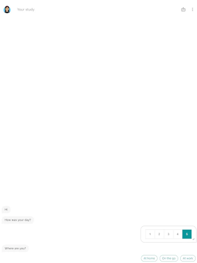 Conversations can be composed by different input and output items, for example as text messages, Likert scales or multiple choice and be triggered by different stimuli, for example by time, by participant need or based on different events.