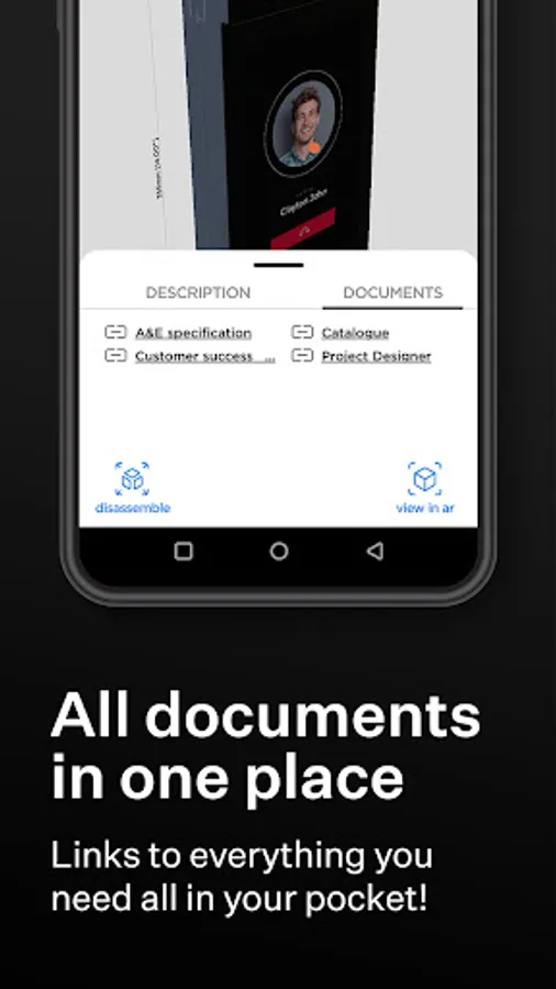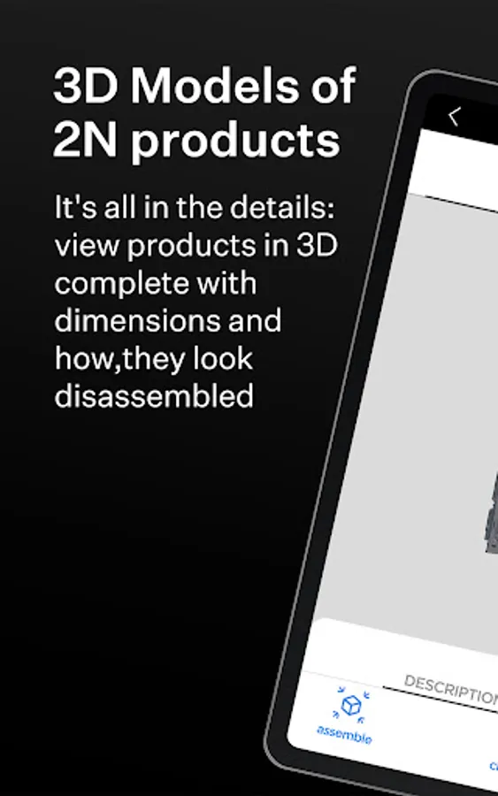 Point your smartphone with the app at the product page in our catalogue and view a 3D model of the product right in front of you!