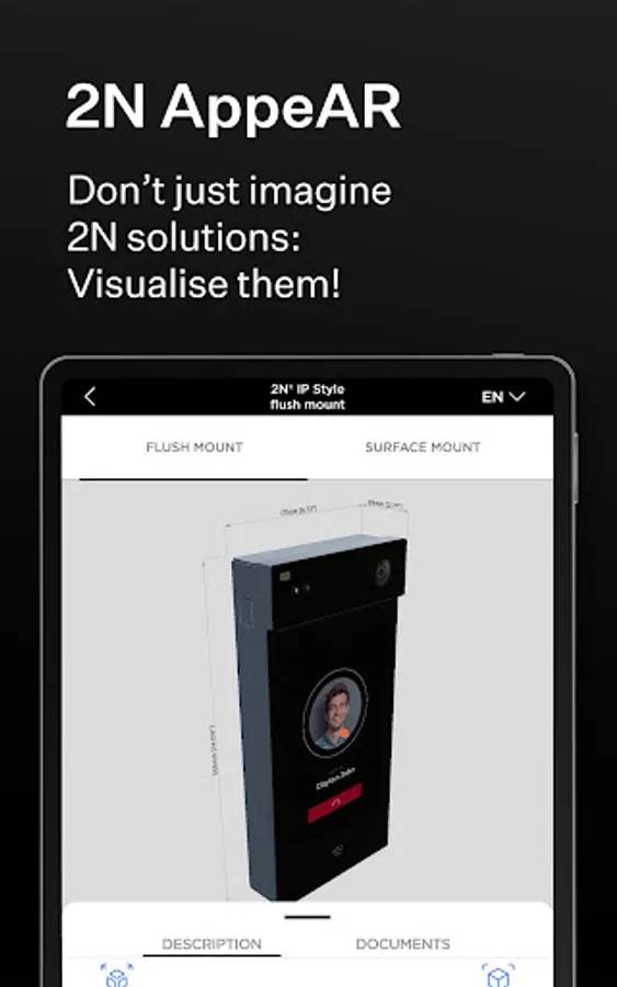 Want to make sure the 2N product you’ve chosen fits your installation? Point your phone with 2N AppeAR installed at the place you want to install it and watch it appear right in front of your eyes in a 1:1 scale display!