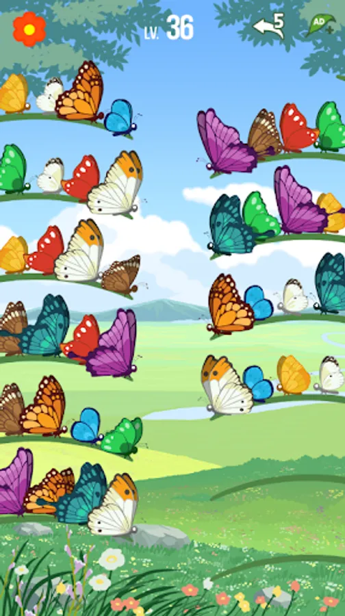 Shy butterflies can only fly next to friends of the same kind.
