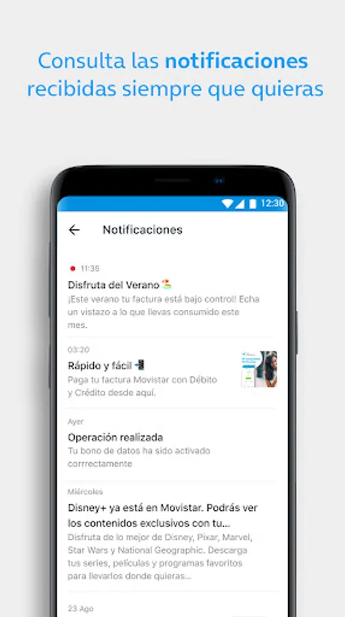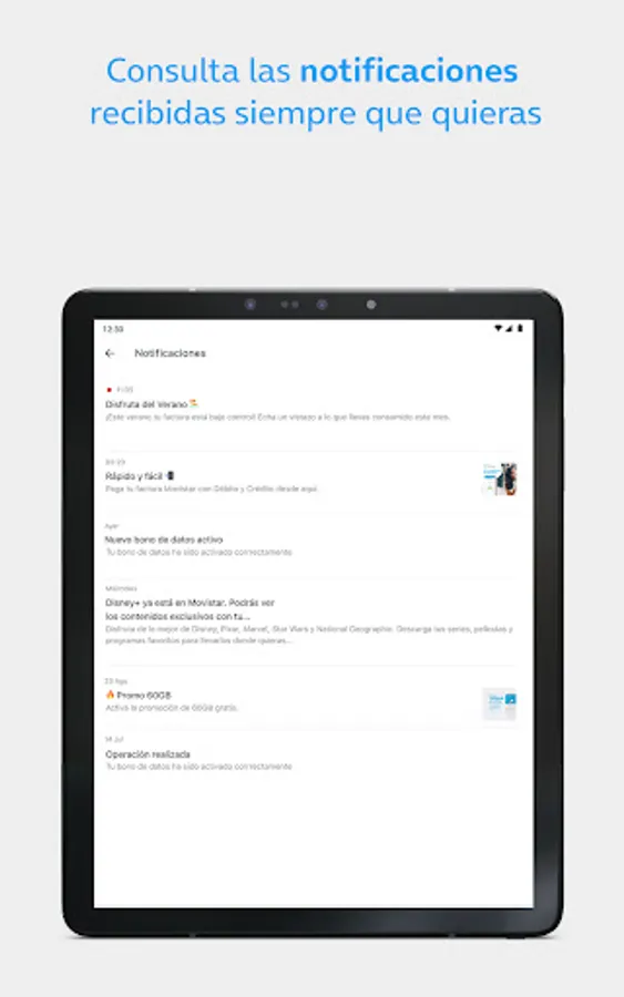 - Customize the settings of the Mi Movistar app and reinforce the security of your session with access through PIN or Biometric-Fingerprint, if the terminal allows it. Access all the notifications received from Movistar whenever you need it.