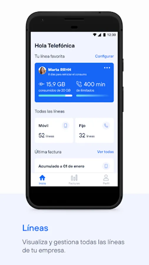 The Telefónica Empresas app offers a free service that allows you to consult and control your business lines with the convenience of having them just a touch away from the screen and always at hand.