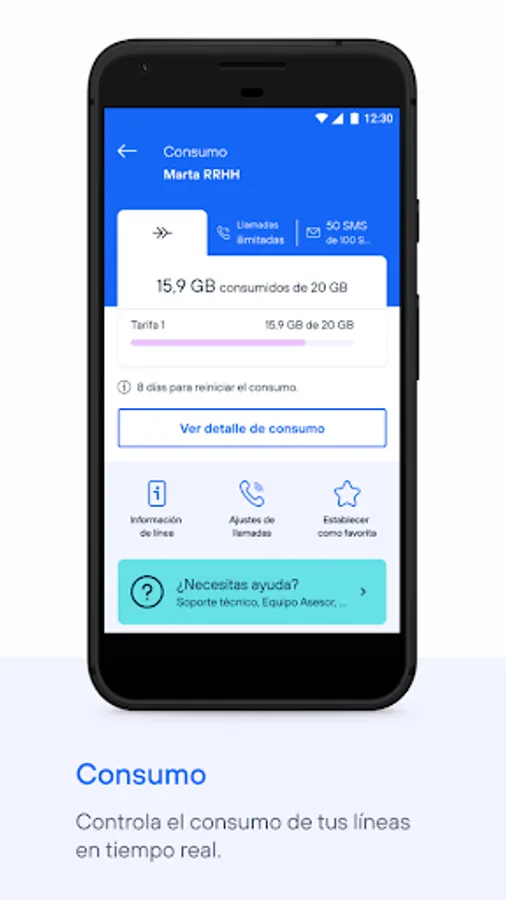 • Mobile line consumption widget. Access to information at a glance on the Smartphone desktop.