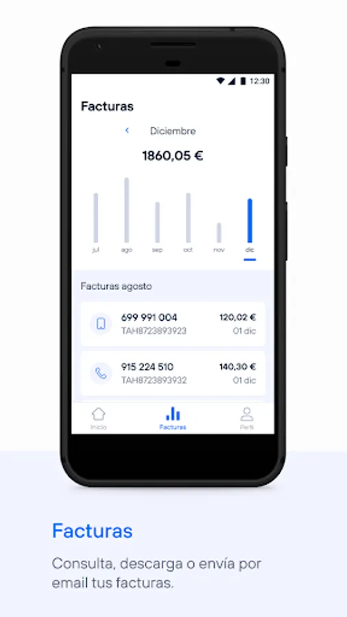 • Check and download the last 6 invoices (Administrator only): You can see the details of the invoice, download it, send it by email or share it through the phone's applications.