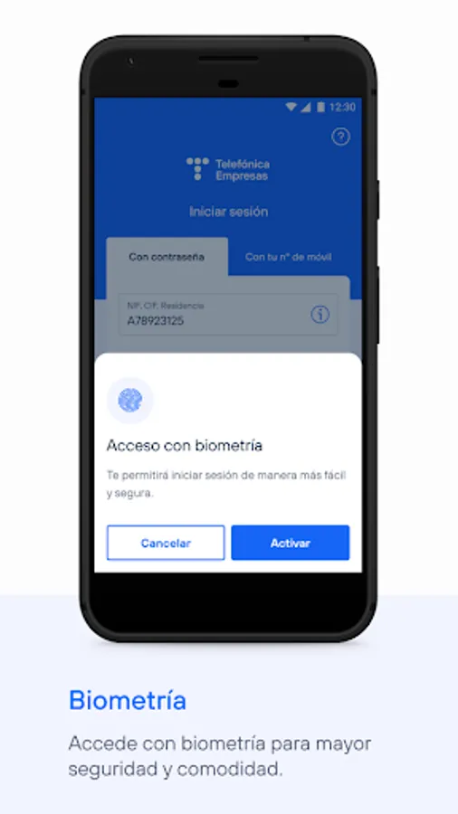 • Secure access with the Mobile, receiving, to access, a unique and one-time password on the phone via SMS, with a fingerprint or with facial recognition to open a session.