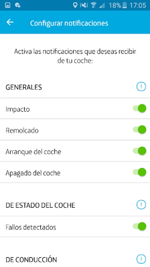 - Alerts and maintenance: Request appointments at your nearest garage, budgets for maintenance and receive alerts of possible failures of your car, if your car is towed away or if it receives an impact.